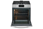 Actualice su cocina y obtenga el aspecto de una estufa empotrada, con el ajuste de una estufa independiente tradicional. Esta gama de control frontal Frigidaire cabe fácilmente en recortes de 30".