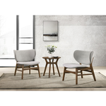 The ayres armchair and ottoman bring a vintage style to your living room. Inspired by mid-century trends, the lounge chair features a bold curved back, rounded seat, and angled legs. Exceptionally soft fabric is upholstered on the seat, back, and ottoman. Both chair and ottoman are padded for long-lasting comfort. The legs are made of solid rubber wood.