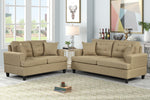 Deléitese con este conjunto de sofá de 2 piezas que cuenta con cojines de felpa en el asiento y el respaldo, rematados con un mechón de adorno. Esta estructura cuadrada incluye vibrantes tonalidades selectas en un tejido similar al lino para un aspecto informal.